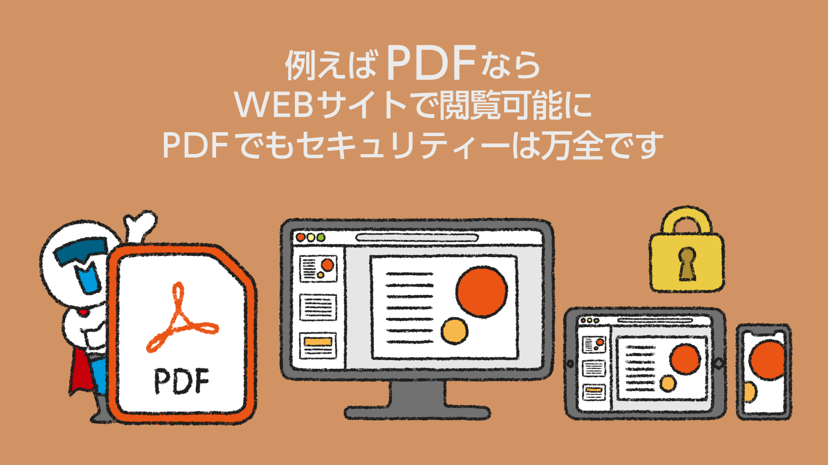● 例えばPDFなら、WEBサイトで閲覧可能に。PDFでもセキュリティは万全です。